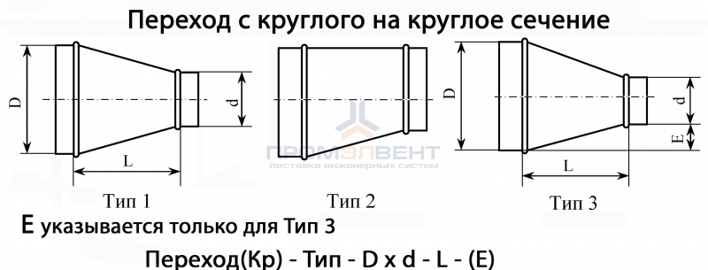 Переходы с круглого сечения на круглое сечение предназначены для плавного перехода системы с одного круглого сечения на другое сечение.