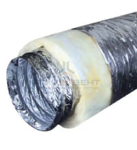 Утеплитель — минеральную вату — размещают между внешними слоями обмотки из поливинилхлорида или фольги. Монтаж гибких воздуховодов с теплоизоляцией необходим в неотапливаемых помещениях, потому что появление конденсата окажет неблагоприятное воздействие на всю вентсистему. Такие модели сложны для самостоятельной установки.